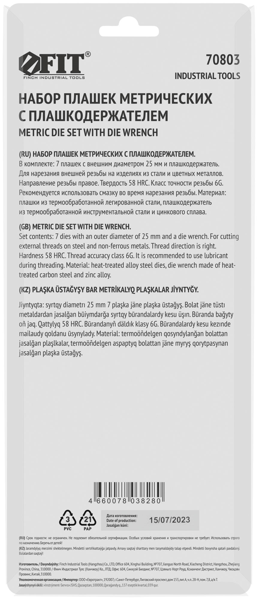 Выберите набор плашек FIT 70803, чтобы обеспечить точность и качество резьбы на ваших проектах.