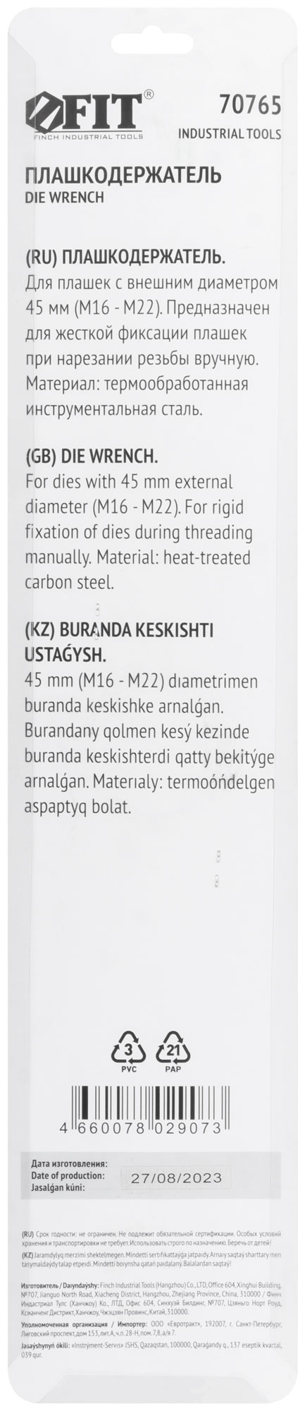 Выберите плашкодержатель от FIT, чтобы повысить качество и эффективность вашей работы с резьбой.