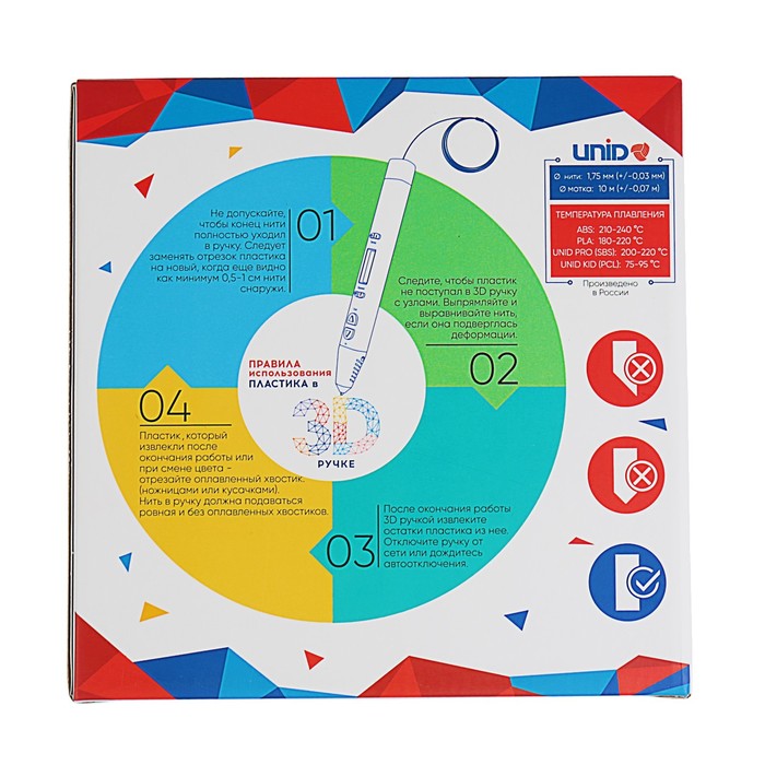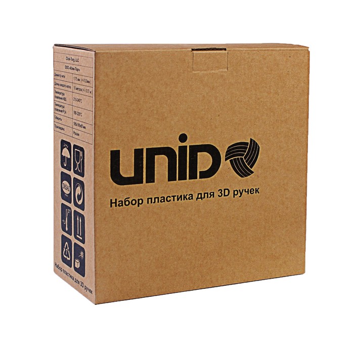 Пластик марки UNID протестирован в лабораториях, где доказано, что он безвреден и не выделяет вредных веществ при нагревании. Материал отличается прочностью, а все цвета содержат насыщенный пигмент.