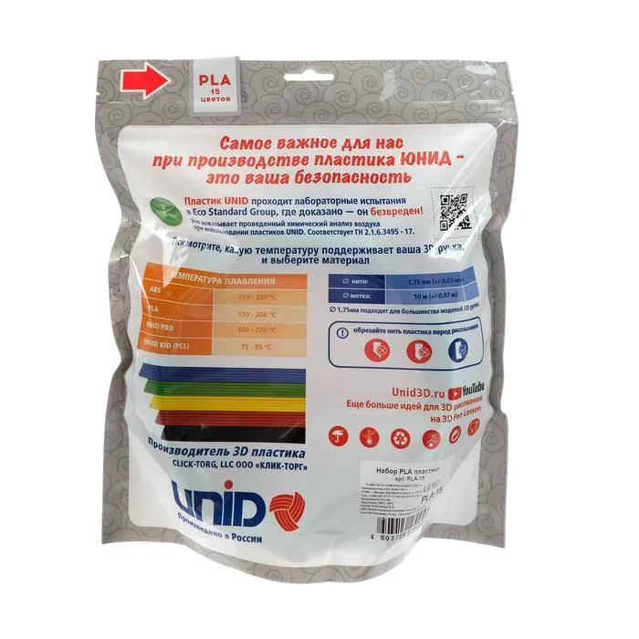 Пластик марки UNID протестирован в лабораториях, где доказано, что он безвреден и не выделяет вредных веществ при нагревании. Материал отличается прочностью, все цвета яркие и глянцевые.