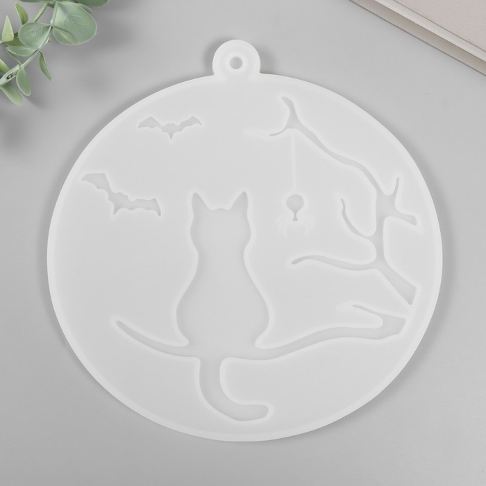 Силиконовый молд, форма для заливки «Кошка на ветке с паучком», 18.2×17.8×0.8 см
