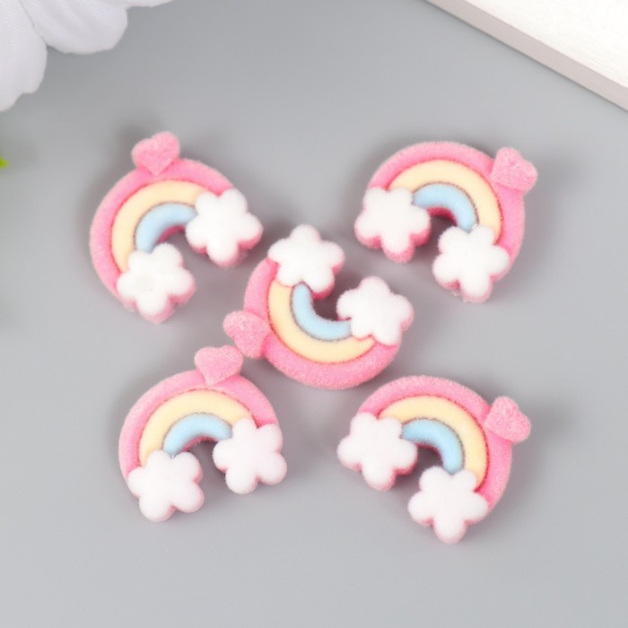 Пластиковый декоративный элемент «Арт Узор. Радуга с сердечком», бархатное напыление, 0.6×1.7×2 см