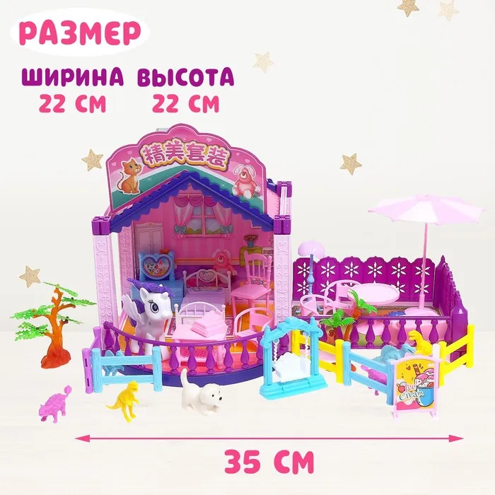 Размер дома: 35 × 22 × 22 см. Подходит для кукол до 10 см.