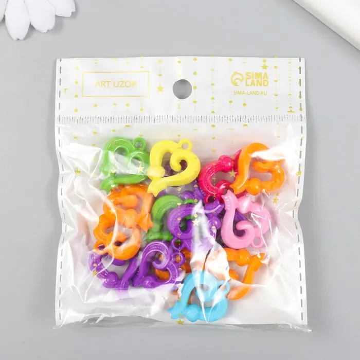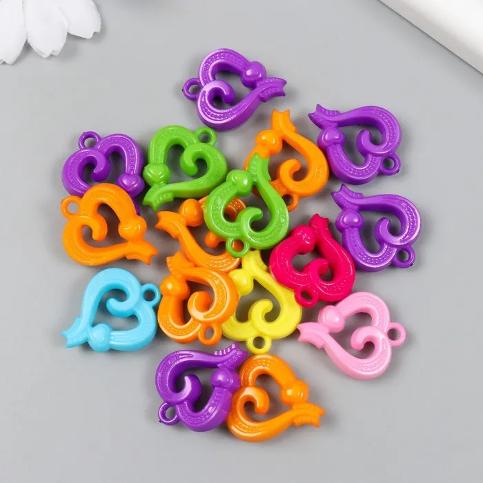 Пластиковый элемент, декоративная подвеска «Арт Узор. Сердца изогнутые», цветные, набор 25 г, 0.7×2.1×2.6 см — Характеристики