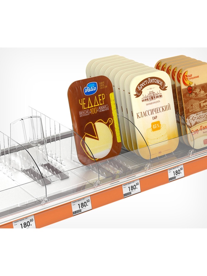 Применяется для организации на полке товаров крупного размера. Рекомендуется крепить на усиленные Т-профили. Имеет насечки с шагом 25 мм для обламывания по длине.