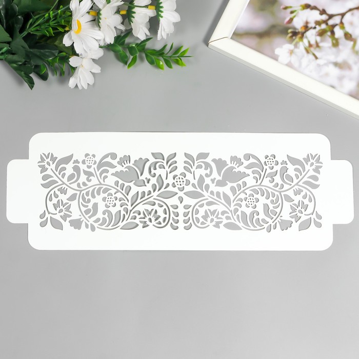 Пластиковый трафарет-бордюр для творчества «Узор птички цветочки», шаблон, 11×32 см