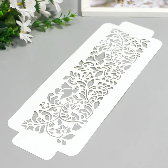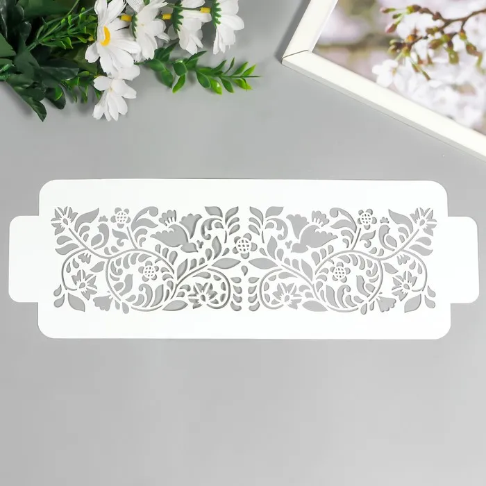 Пластиковый трафарет-бордюр для творчества «Узор птички цветочки», шаблон, 11×32 см — Характеристики