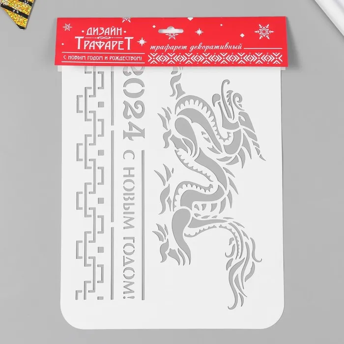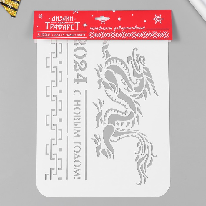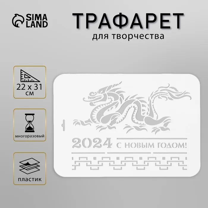 Пластиковый трафарет для творчества «2024 с новым годом», с надписью, шаблон, 22×31 см — Характеристики