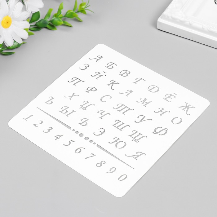 Пластиковый трафарет для творчества «Алфавит с цифрами», с надписью, шаблон, 15×15 см