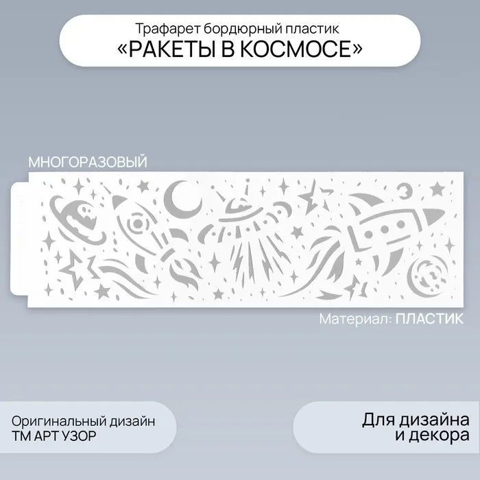 Пластиковый трафарет для творчества бордюрный «Арт Узор. Ракеты в космосе», шаблон, 40×12 см — Характеристики