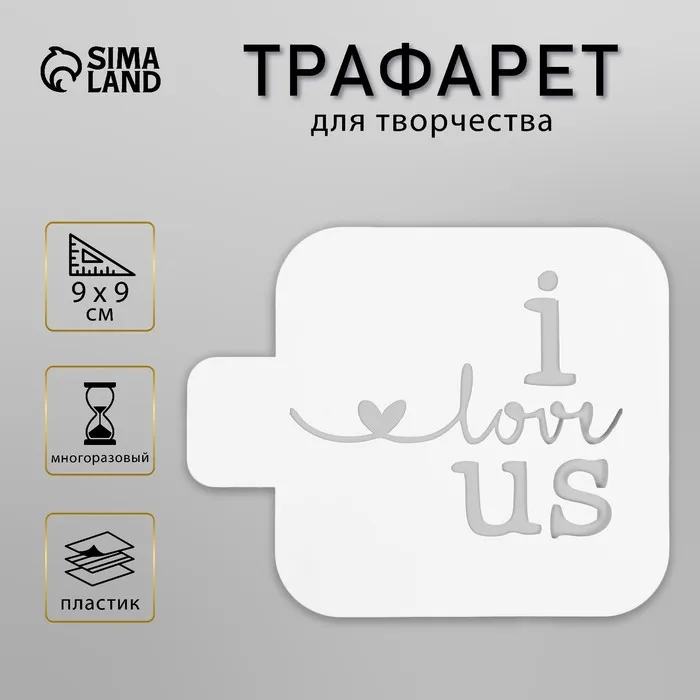 Пластиковый трафарет для творчества «I love us», с надписью, шаблон, 9×9 см — Характеристики