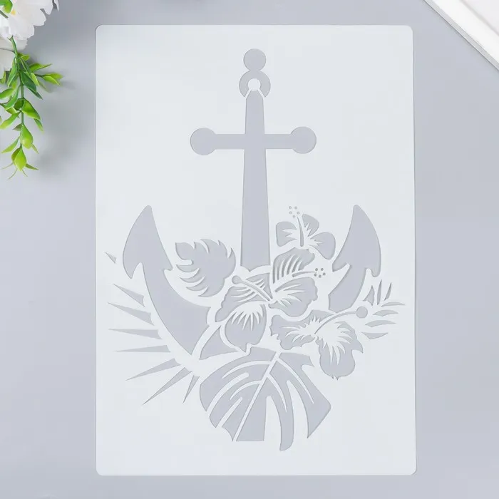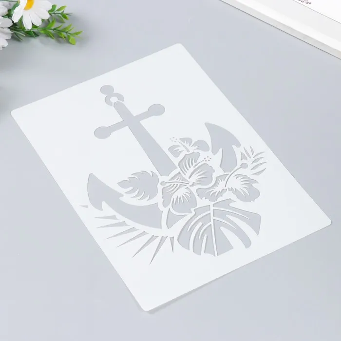 Пластиковый трафарет для творчества «Якорь и пальмовые листья», шаблон, 29.7×21 см — Характеристики