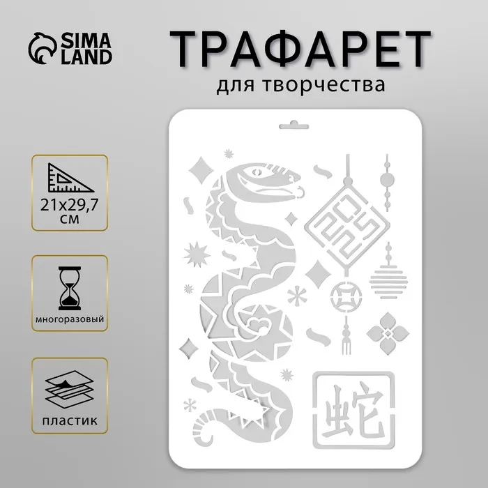 Пластиковый трафарет для творчества «Китайский Новый год. Змея», шаблон, размер А4 — Характеристики