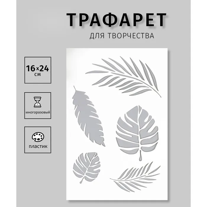 Пластиковый трафарет для творчества «Листочки», шаблон, 24×16 см — Характеристики