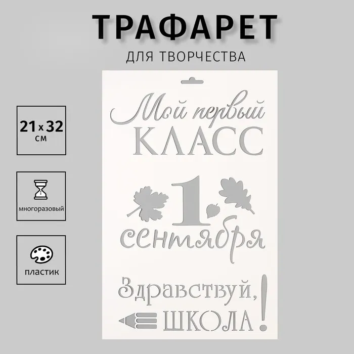 Пластиковый трафарет для творчества «Мой первый класс. 1 сентября», шаблон, 21×32 см — Характеристики