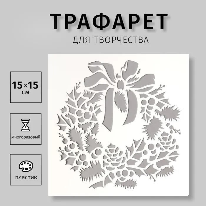 Пластиковый трафарет для творчества «Новогодний венок», 15×15 см — Характеристики