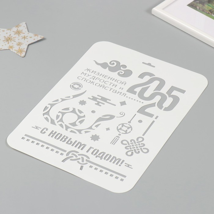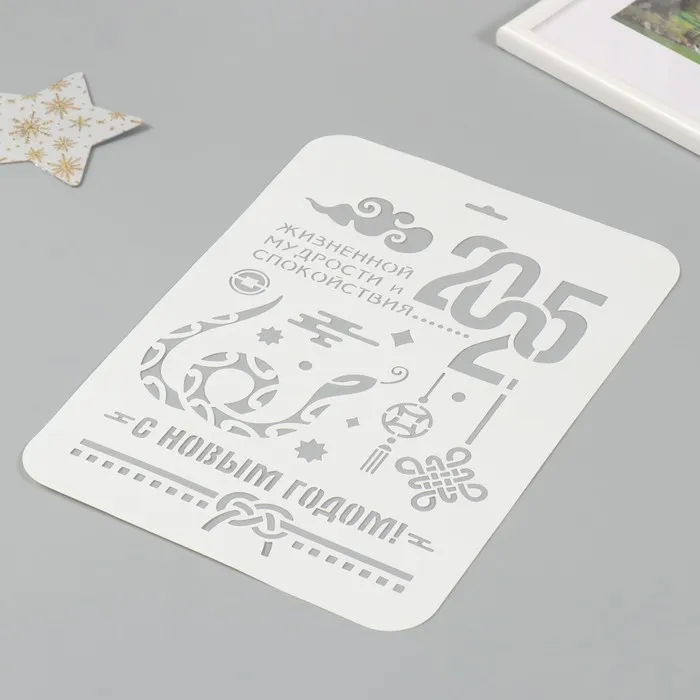 Пластиковый трафарет для творчества «С Новым годом 2025. Змея», шаблон, размер А4 — Характеристики