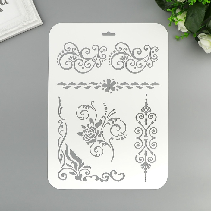 Пластиковый трафарет для творчества «Цветочные узоры», шаблон, 22×31 см — Характеристики