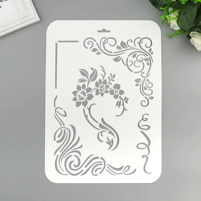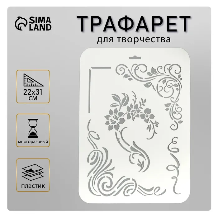 Пластиковый трафарет для творчества «Цветочный», шаблон, 22×31 см — Характеристики