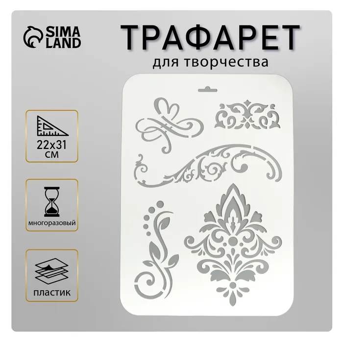 Пластиковый трафарет для творчества «Узорчатый», шаблон, 22×31 см — Характеристики