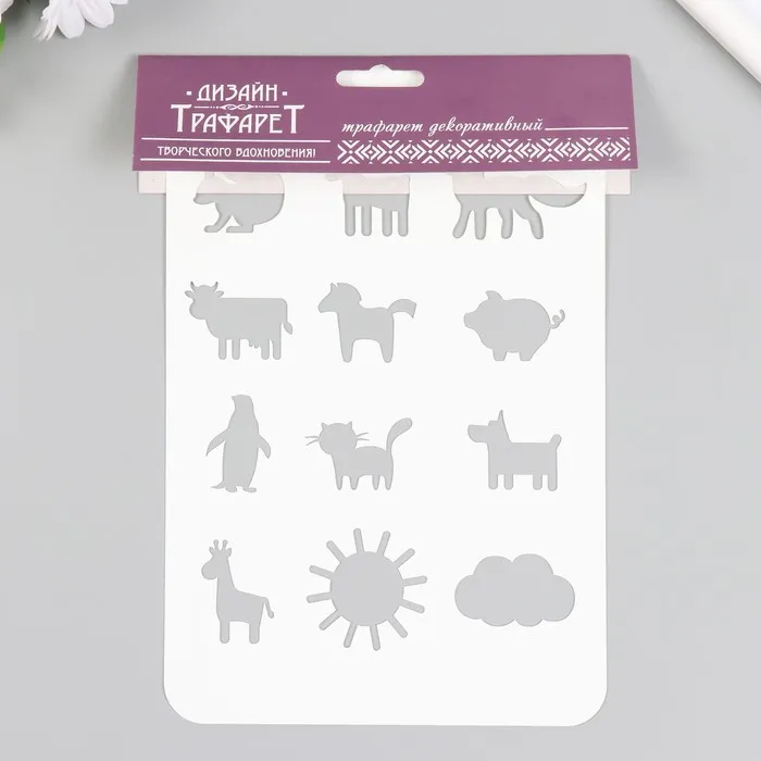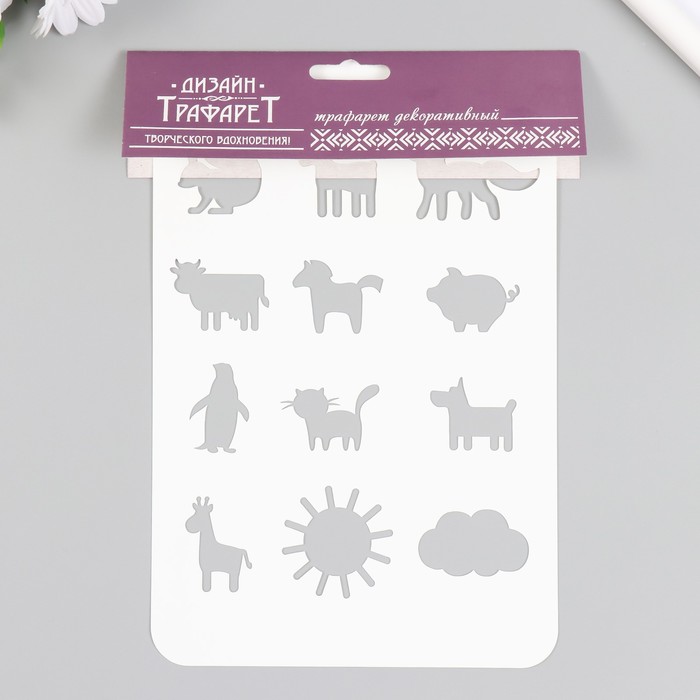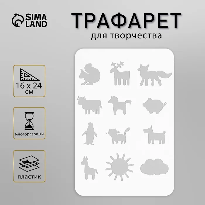 Пластиковый трафарет для творчества «Животные», шаблон, 16×24 см — Характеристики