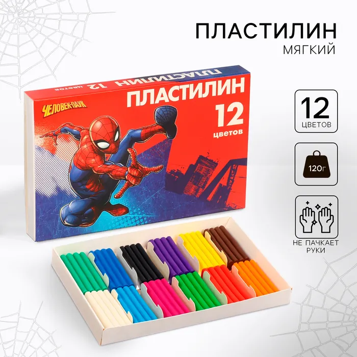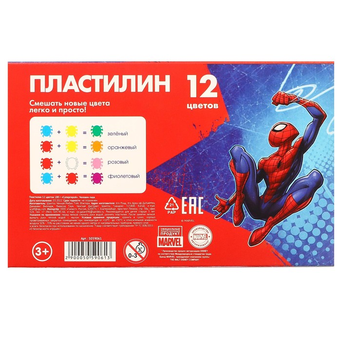 Пластилин 12 цветов 180 г «Супергерой», Человек-паук — Характеристики