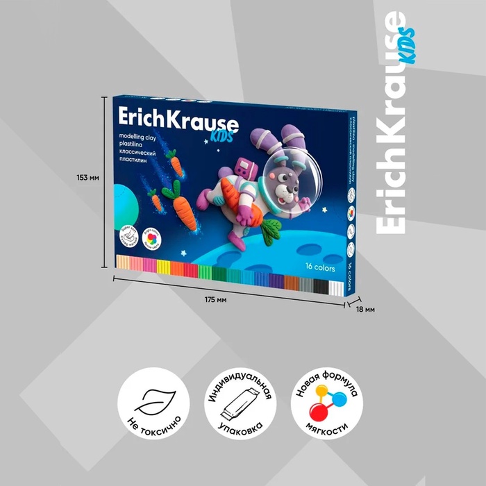 Классический пластилин ErichKrause повышенной мягкости для детей 3-6 лет обладает высокой эластичностью и гибкостью. Пластилин идеально подходит для творческих задач и развития мелкой моторики, хорошо сохраняет свою форму и не застывает на воздухе, а также не прилипает к рукам и не пачкает одежду.