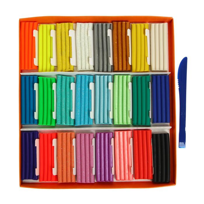 Пластилин 24 цвета 312 г (6 классических, 6 с блёстками, 6 перламутровых, 6 флуоресцентных) "Гамма" "Оранжевое солнце", со стеком — Характеристики
