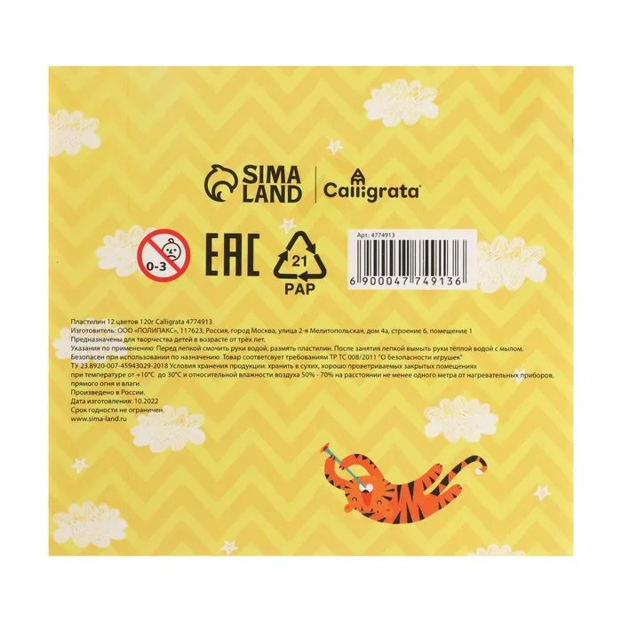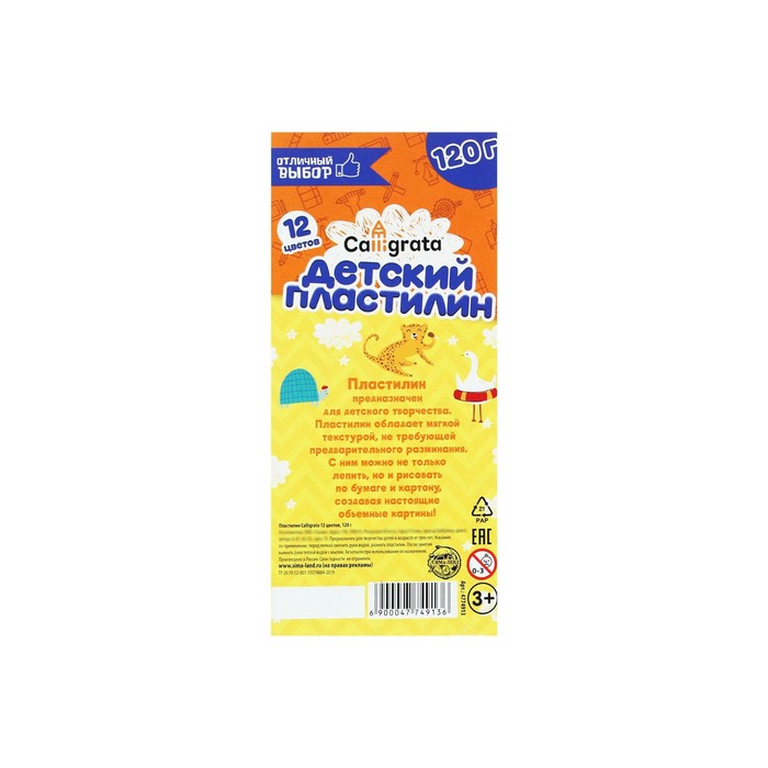 Пластилин Calligrata, 12 цветов, 120 г — Характеристики