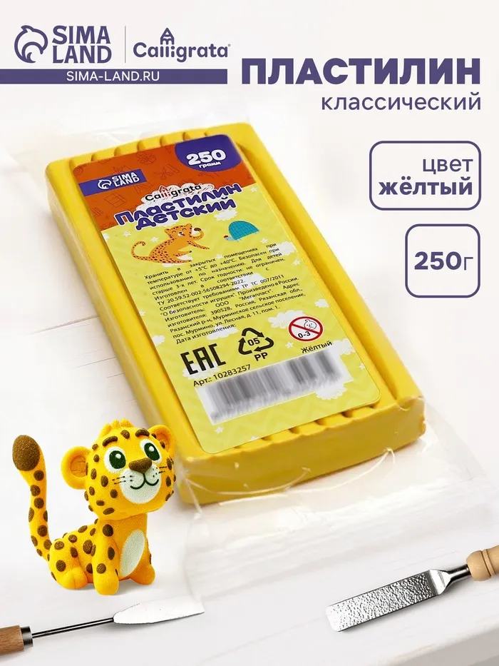 Пластилин Calligrata Классический, 250 г, жёлтый — Характеристики