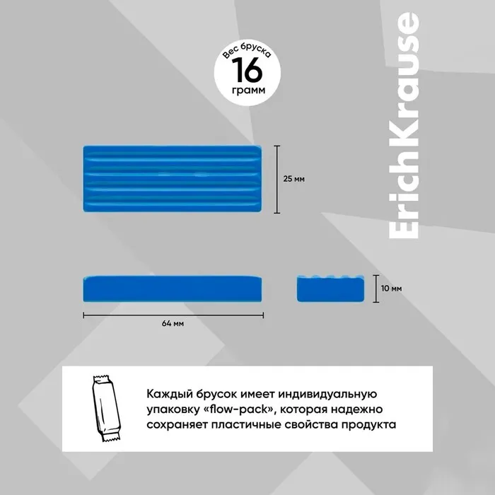 - Каждый брусок имеет индивидуальную упаковку «flow-pack», которая надежно сохраняет товарный вид и пластичные свойства продукта.