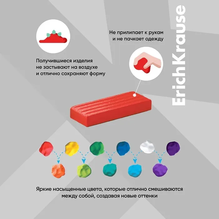 Классический пластилин ErichKrause® средней мягкости создан для решения широкого круга творческих задач и для развития мелкой моторики.