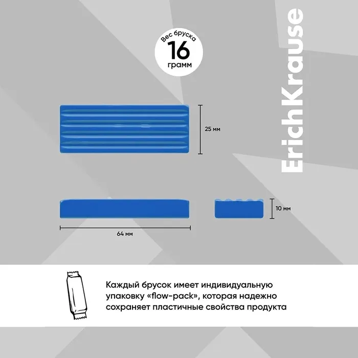 - Каждый брусок имеет индивидуальную упаковку «flow-pack», которая надежно сохраняет товарный вид и пластичные свойства продукта.