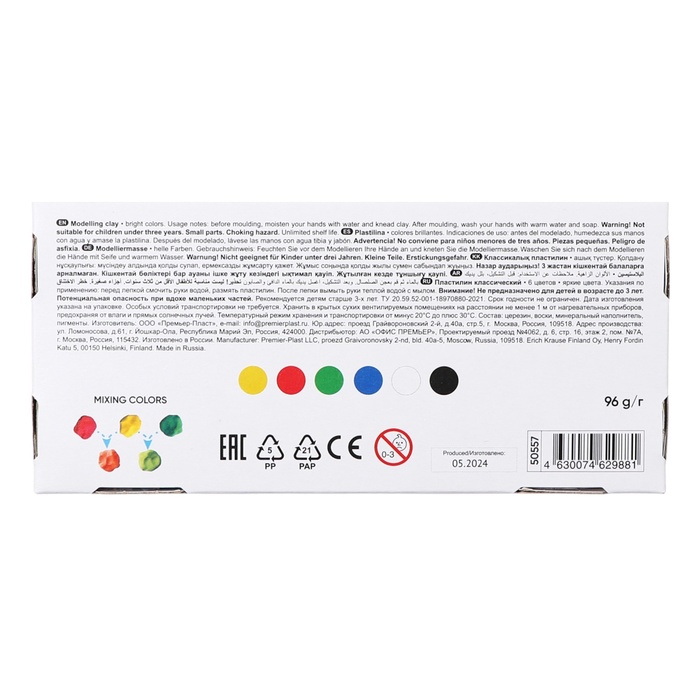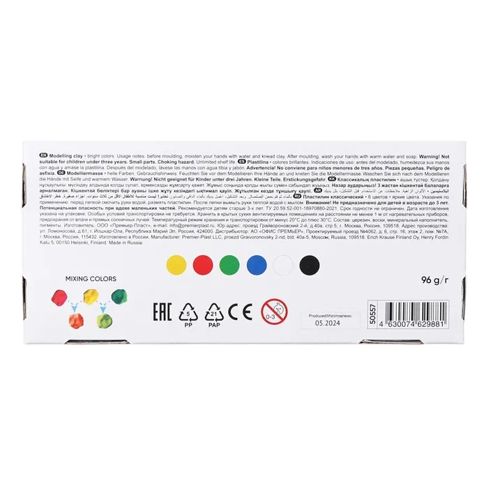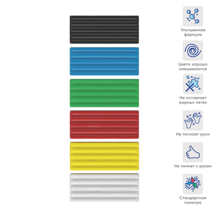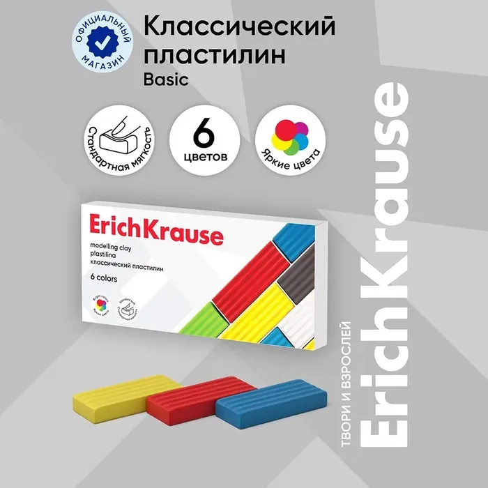 Пластилин ErichKrause Basic, 6 цветов, 96 г, в картонной упаковке — Характеристики