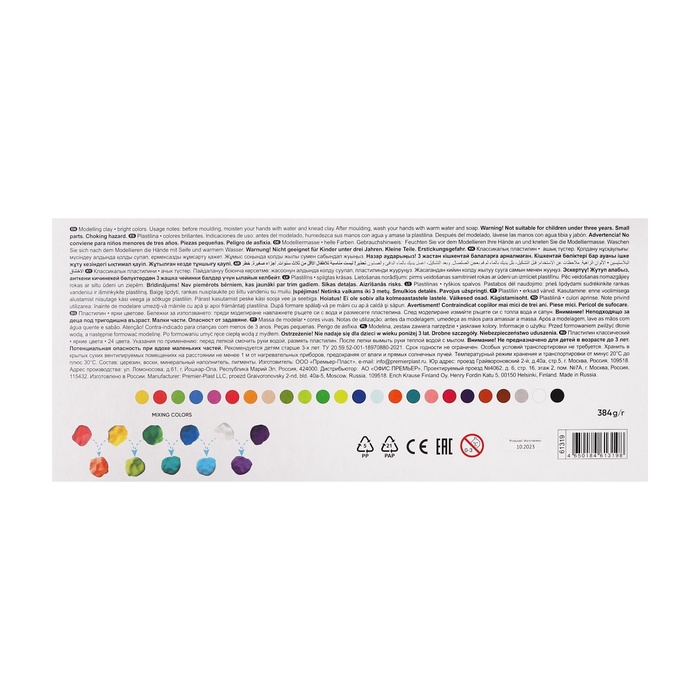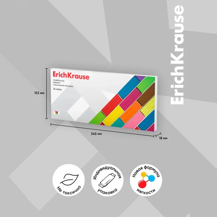 Пластилин ErichKrause «Классический», 24 цвета, 384 г, в картонной упаковке — Характеристики