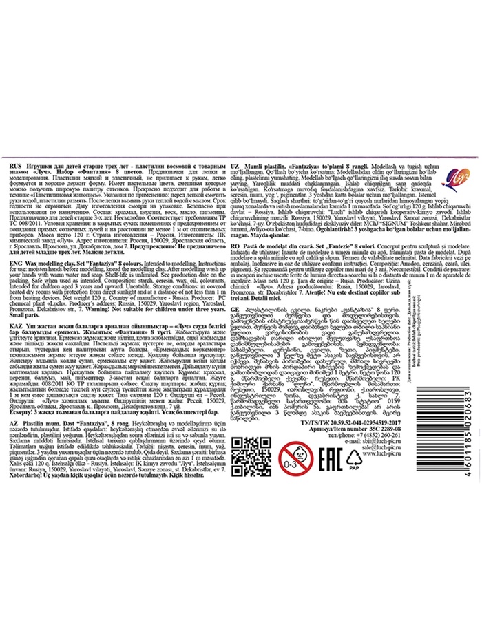 Пластилин мягкий (восковой) «Луч. Фантазия», 18 цветов, 270 г, со стеком, МИКС