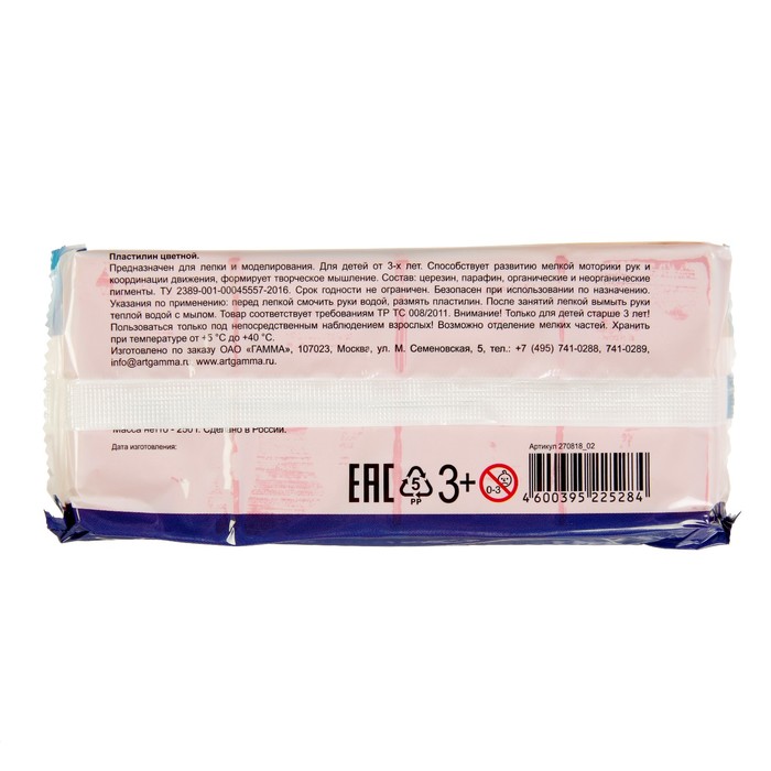 Пластилин «Гамма. Классический», 250 г, алый — Характеристики