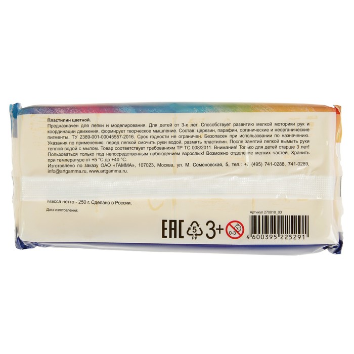 Пластилин «Гамма. Классический», 250 г, жёлтый — Характеристики