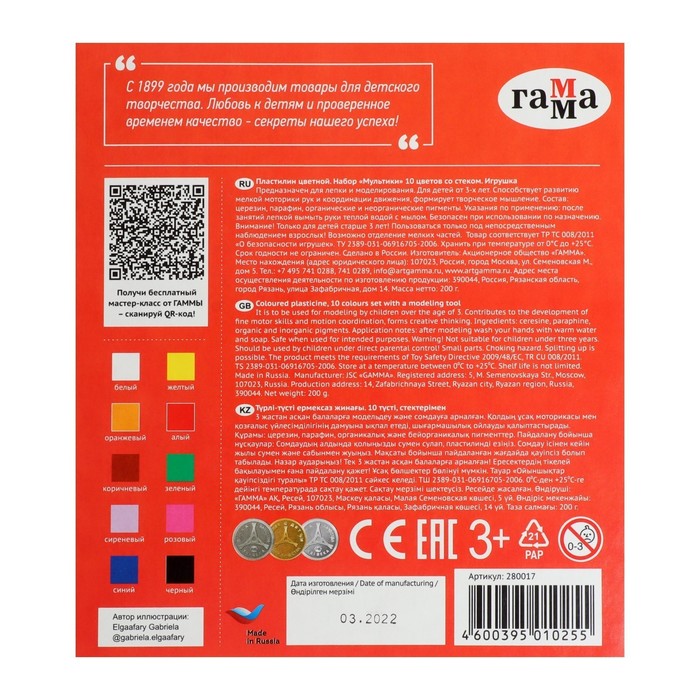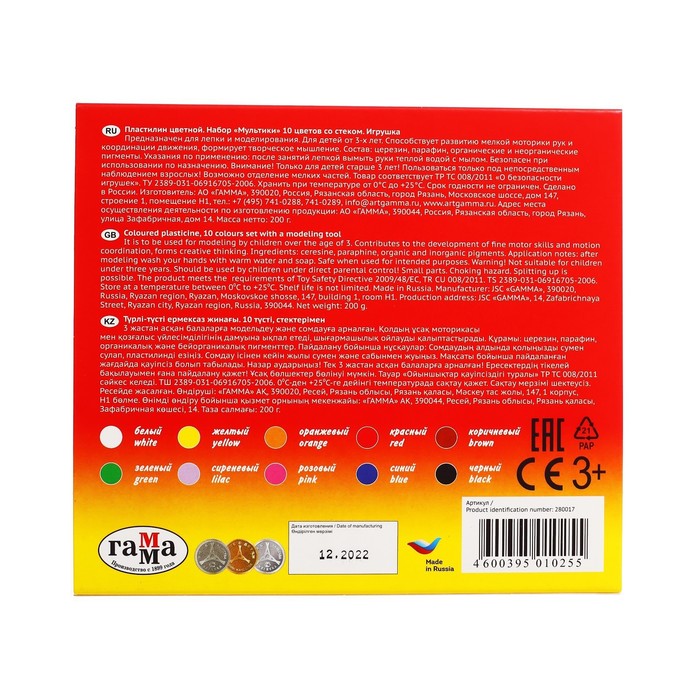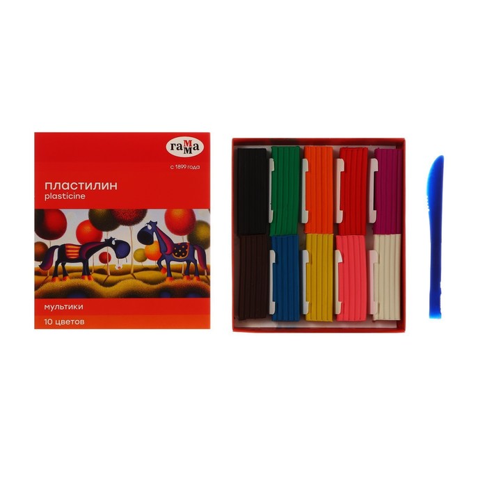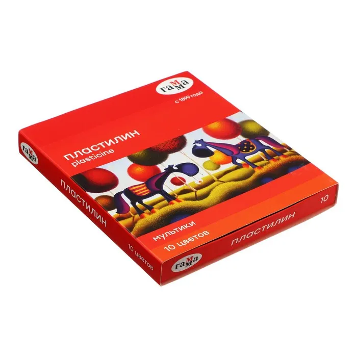Пластилин «Гамма. Мультики», 10 цветов, 200 г, со стеком, картонная упаковка — Характеристики