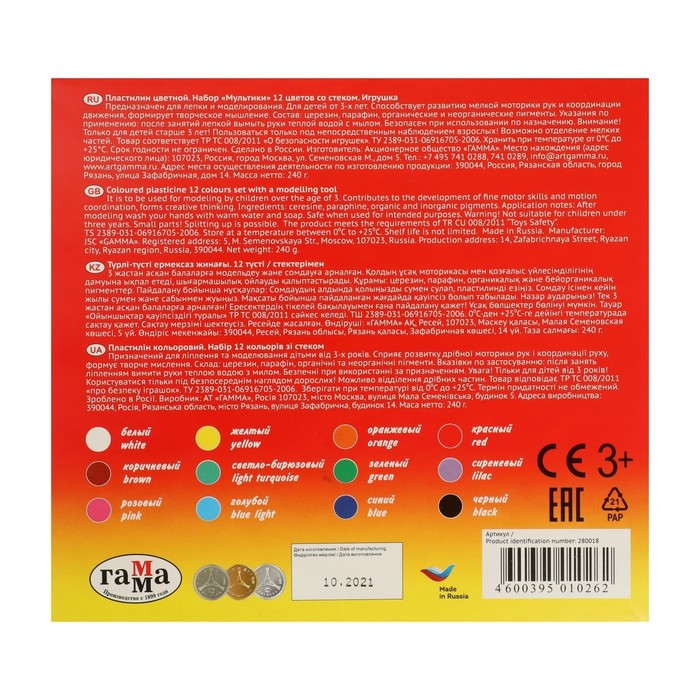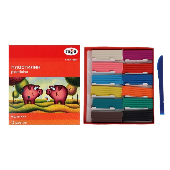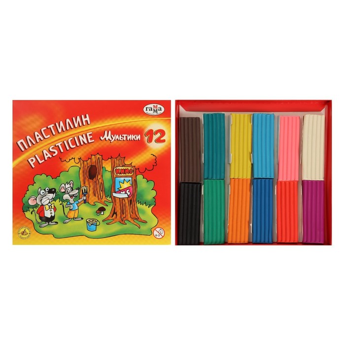 Пластилин «Гамма. Мультики», 12 цветов, 240 г, со стеком, картонная упаковка — Характеристики