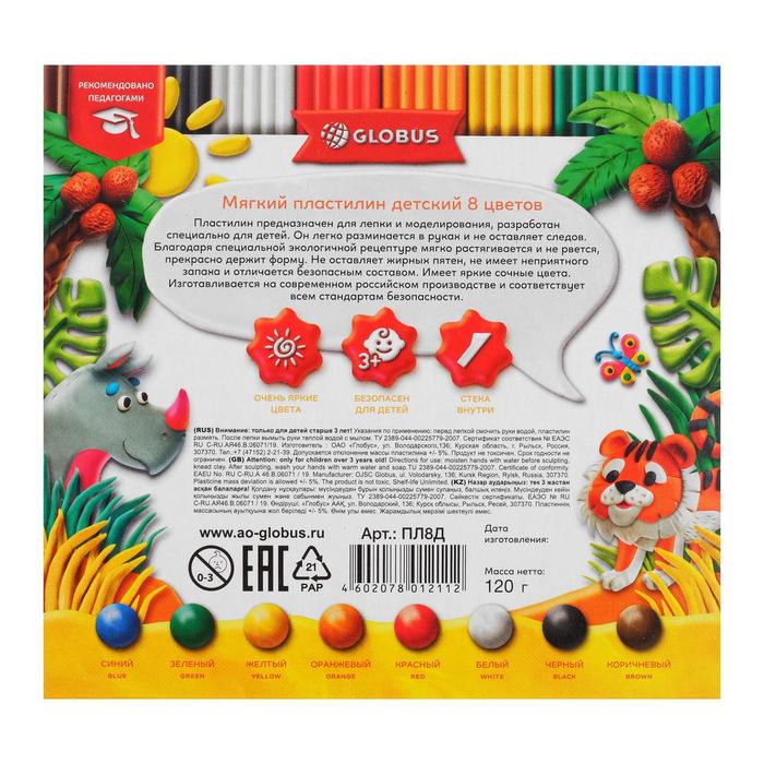 Пластилин GLOBUS «Детский», 8 цветов, 120 г, мягкий