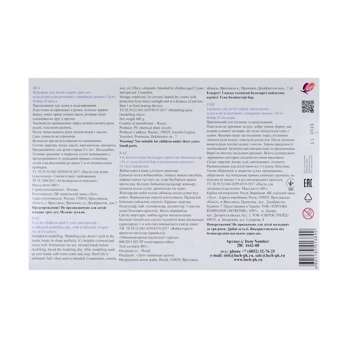 Пластилин «Луч. Классика цвета», 24 цвета, 480 г — Характеристики