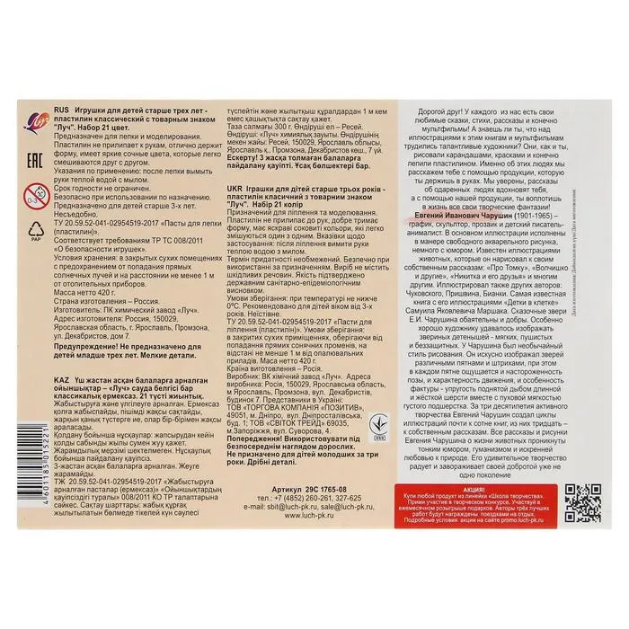 Пластилин «Луч. Школа творчества», 21 цвет, 420 г — Характеристики