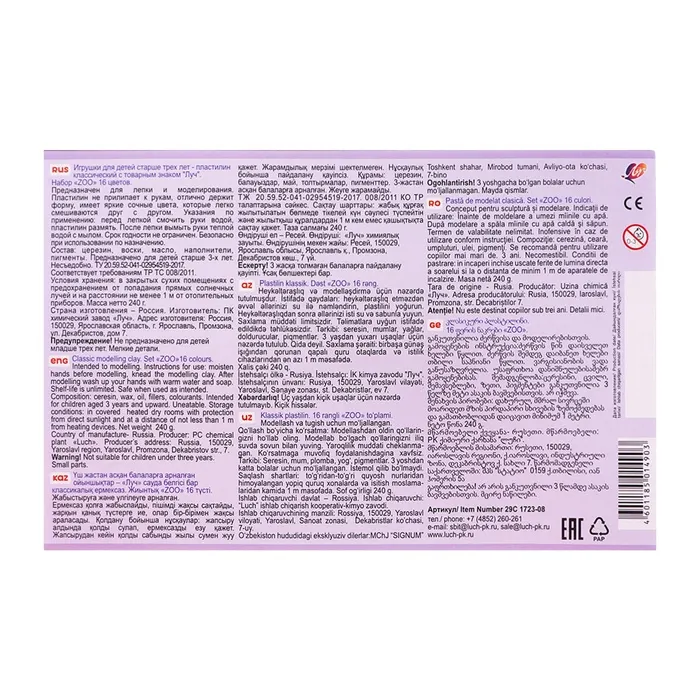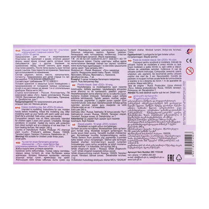 Пластилин «Луч. ZOO», 16 цветов, 240 г — Характеристики