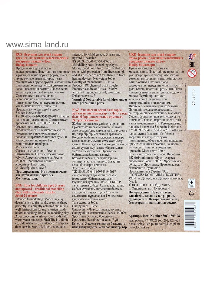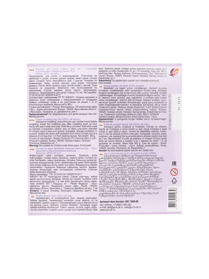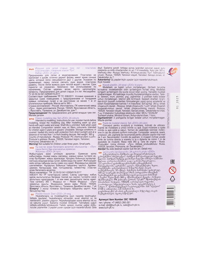 Пластилин «Луч. ZOO», 24 цвета, 360 г — Характеристики