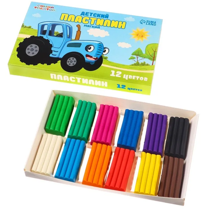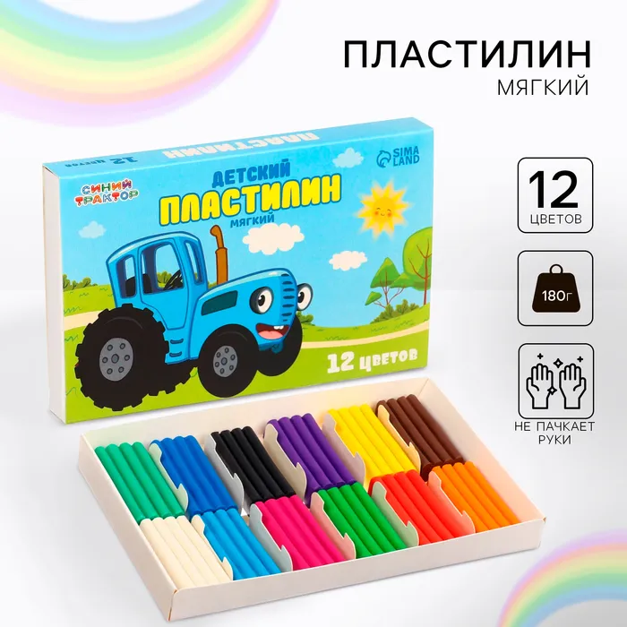 Пластилин мягкий, 12 цветов, 180 г, Синий трактор — Характеристики
