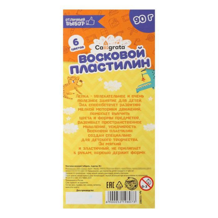 Пластилин мягкий (восковой) Calligrata, 6 цветов, 90 г — Характеристики
