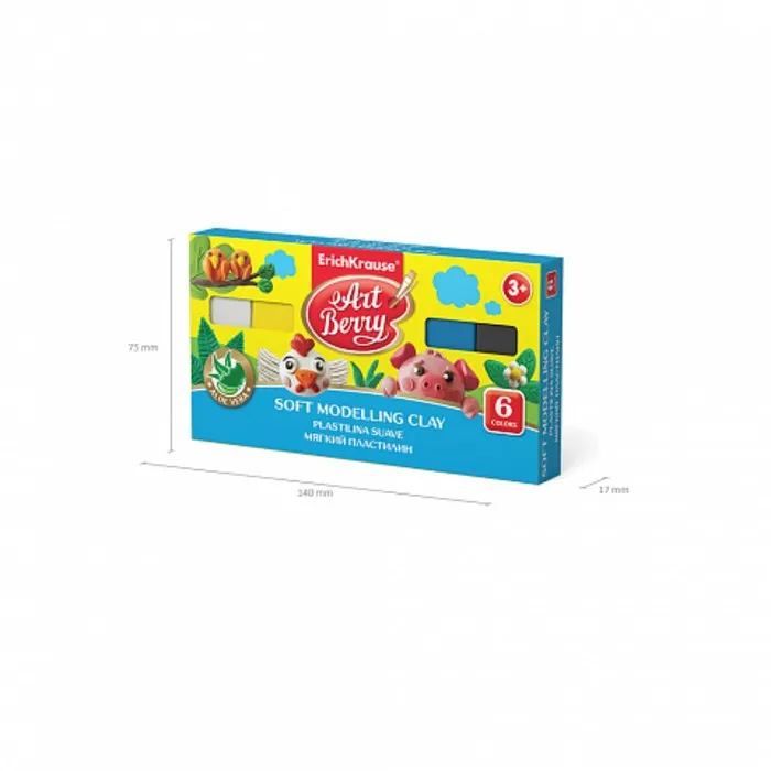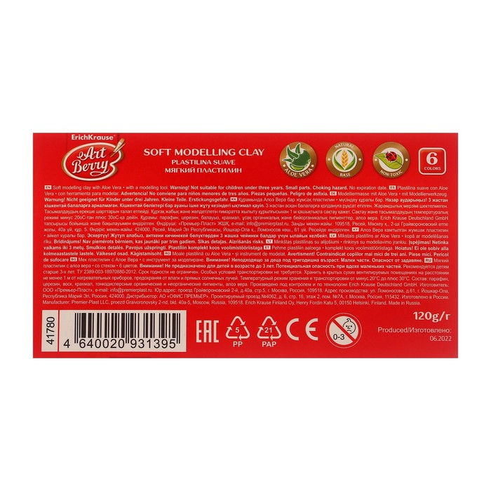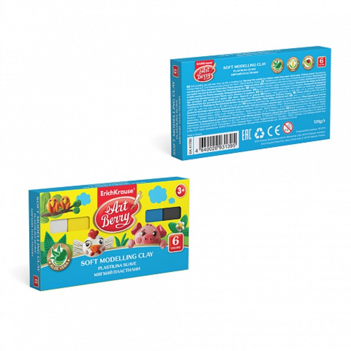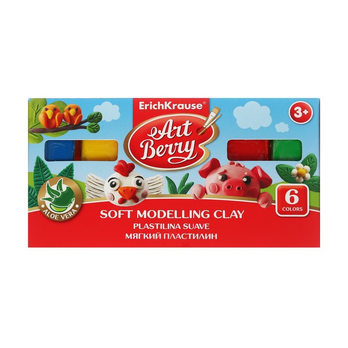 Пластилин мягкий (восковой) ErichKrause ArtBerry, 6 цветов, 120 г, с алоэ вера, со стеком, в коробке — Характеристики