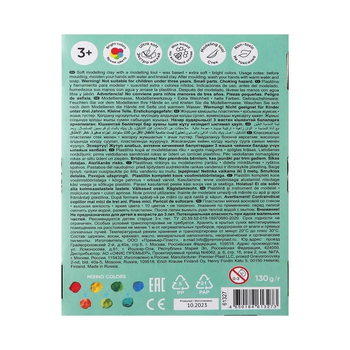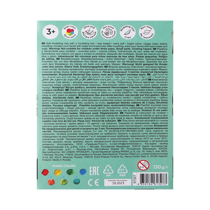 Мягкий восковой пластилин ErichKrause имеет мягкую консистенцию и особую пластичность, что делает его отличным инструментом для развития мелкой моторики у малышей и дошкольников. Пластилин не требует предварительного разминания, не застывает на воздухе, а также не прилипает к рукам и не пачкает одежду. Цветовая палитра содержит яркие насыщенные цвета, которые отлично смешиваются между собой, создавая новые оттенки. Каждый брусок имеет индивидуальную упаковку «flow-pack», которая надежно сохраняет товарный вид и пластичные свойства продукта.