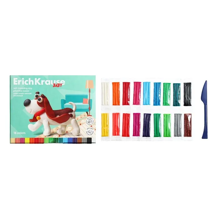 Мягкий восковой пластилин ErichKrause имеет мягкую консистенцию и особую пластичность, что делает его отличным инструментом для развития мелкой моторики у малышей и дошкольников. Пластилин не требует предварительного разминания, не застывает на воздухе, а также не прилипает к рукам и не пачкает одежду. Цветовая палитра содержит яркие насыщенные цвета, которые отлично смешиваются между собой, создавая новые оттенки. Каждый брусок имеет индивидуальную упаковку «flow-pack», которая надежно сохраняет товарный вид и пластичные свойства продукта.